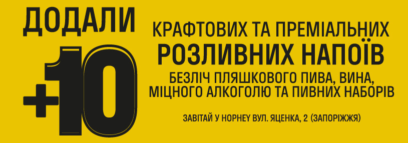 Більше товарів. Нові сорти розливного та пляшкового пива, міцні алкогольні напої, сидри та закуски на будь-який смак.